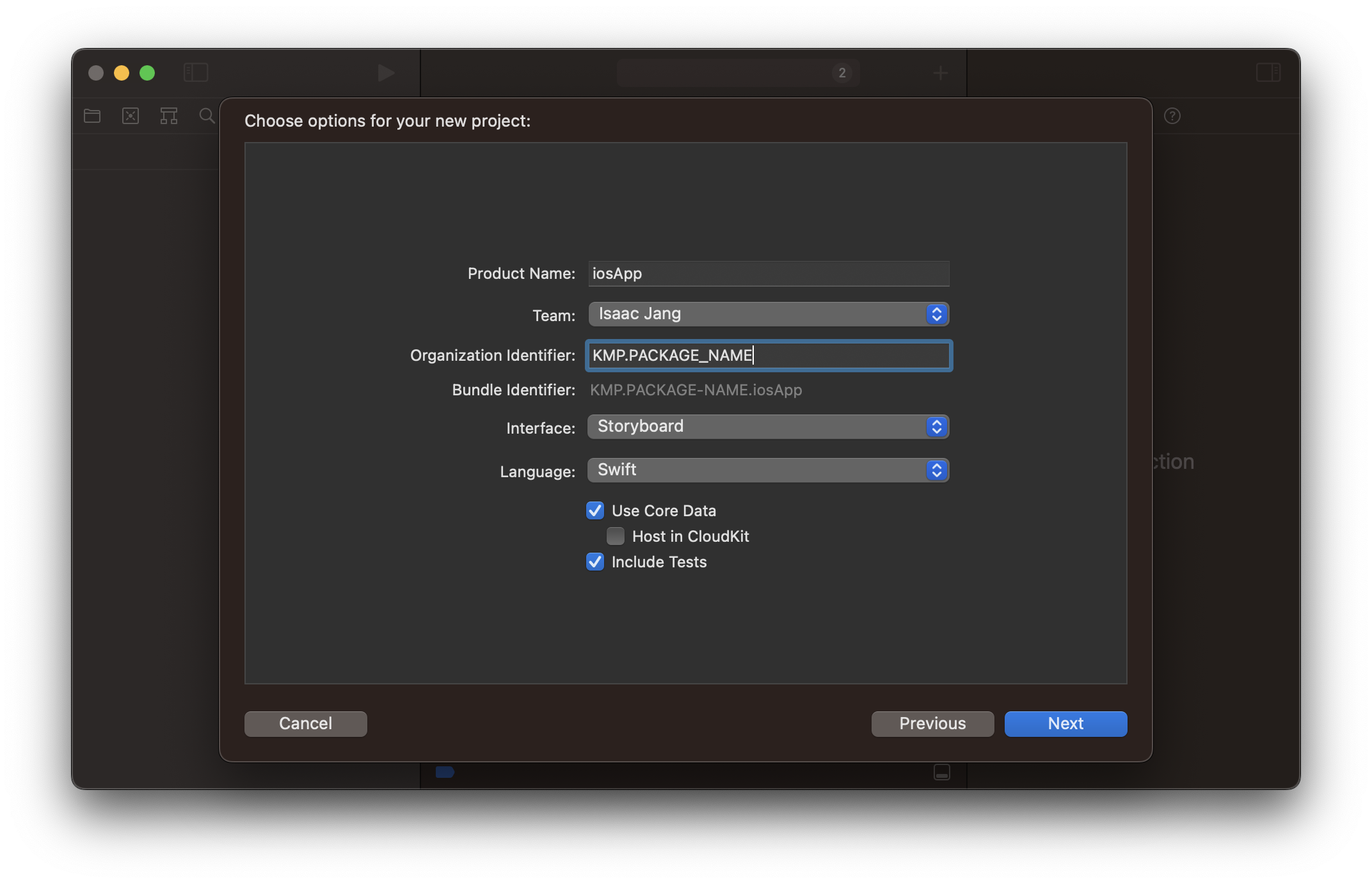 - Organization Identifier 을 KMP 프로젝트에 지정된 패키지명으로 지정한다.